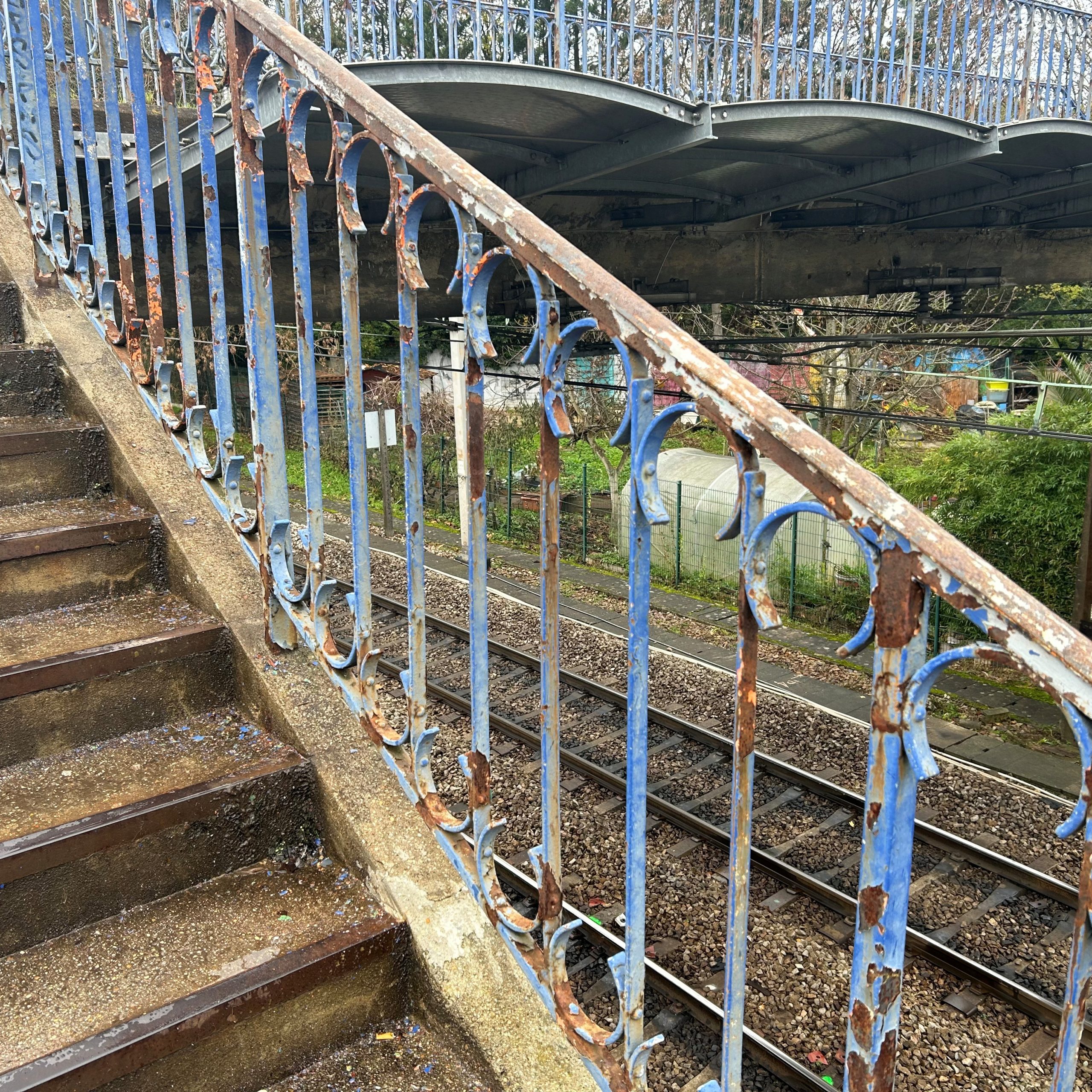 Cette notion chère au Maire et à son adjointe à la culture, prend tout son sens du côté du RER avec la grille du pont au-dessus des voies (il appartient à la ville et non pas à la RATP ) qui tient grâce à la rouille.