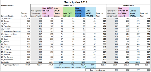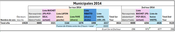 En 2014, la liste de fusion de L. VASTEL a fortement bénéficié des reports de voix