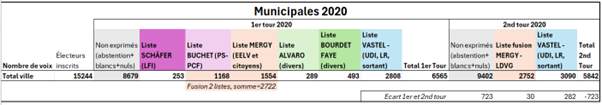 Entre les 2 tours de 2020, G. MERGY a fusionné sa liste citoyenne-EELV (23.6% des voix) avec celle du PS-PCF de P. BUCHET (17,8%).