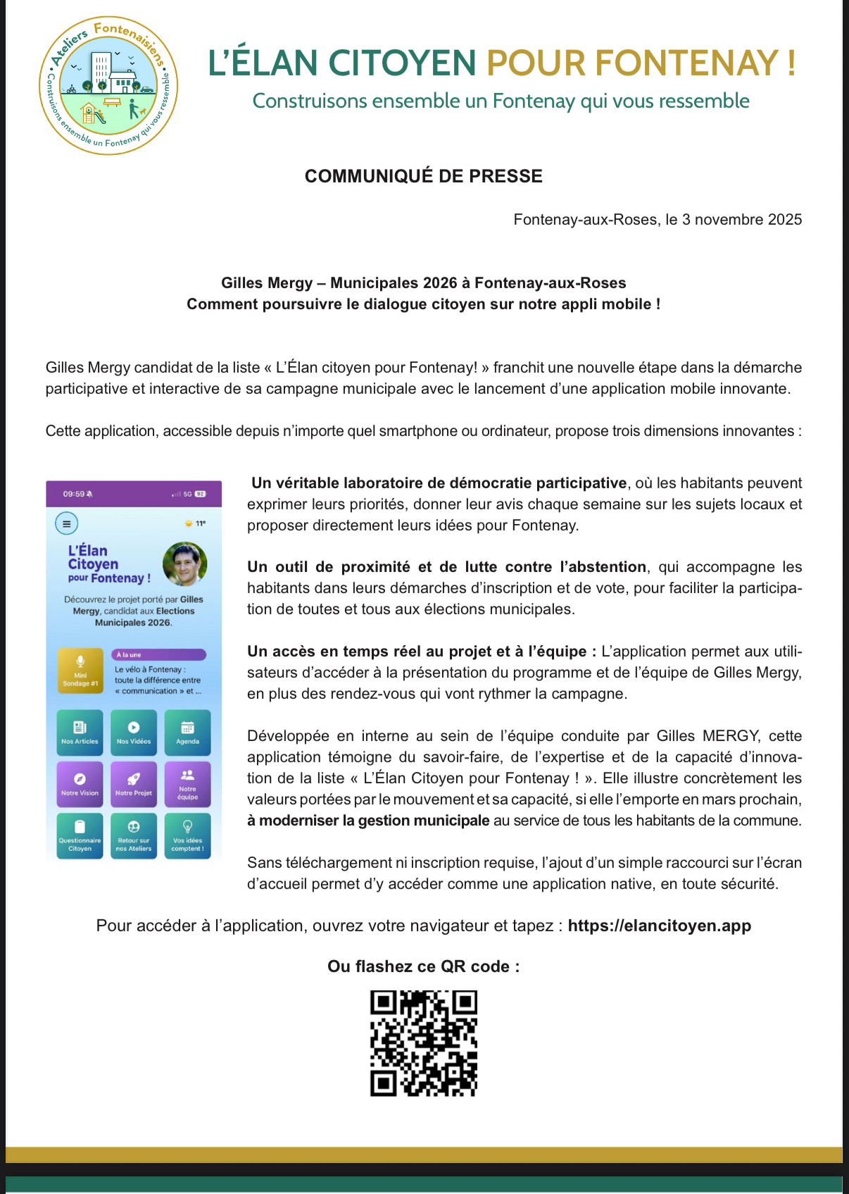 Communiqué de presse de la liste « L’élan citoyen pour Fontenay ! » : Comment poursuivre le dialogue citoyen sur notre appli mobile !