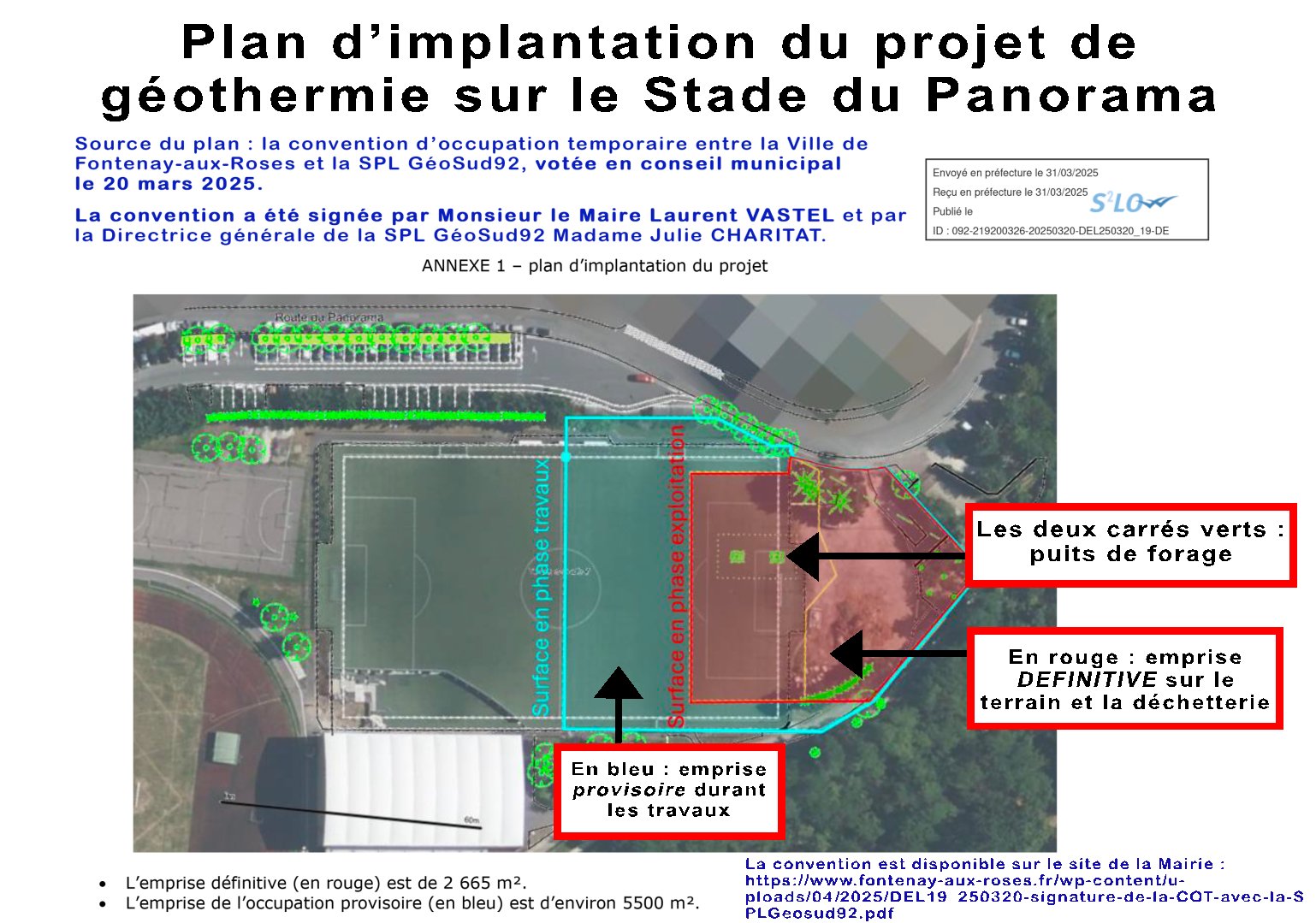 En mars 2025 a été voté en conseil municipal le projet de géothermie de la ville de Fontenay-aux-Roses dont les puits de forage viendront supprimer définitivement plus de 1100m2 du seul terrain synthétique homologué du Stade du Panorama. Nous nous sommes mobilisés tout au long de l’année 2025 contre la mise en péril de la pratique du football par ce projet de géothermie, et vous y avez répondu présent, en témoigne le nombre record de 1300 signatures atteint par la pétition que nous avions lancé1.
