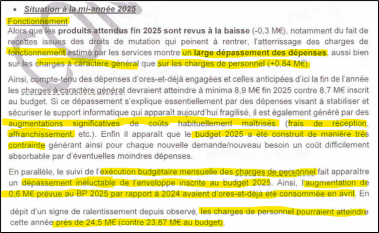En réalité, nous avions à l’époque des éléments montrant que les dépenses de personnel sont sur une trajectoire largement au-dessus du budget de 23,87 M€. Et cela n’a rien à voir avec une potentielle élection législative anticipée.