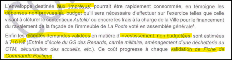 Depuis, grâce à l’intervention de conseillers municipaux experts des finances municipales, nous avons eu accès à une note confidentielle interne à l’attention du maire. En voici des extraits :