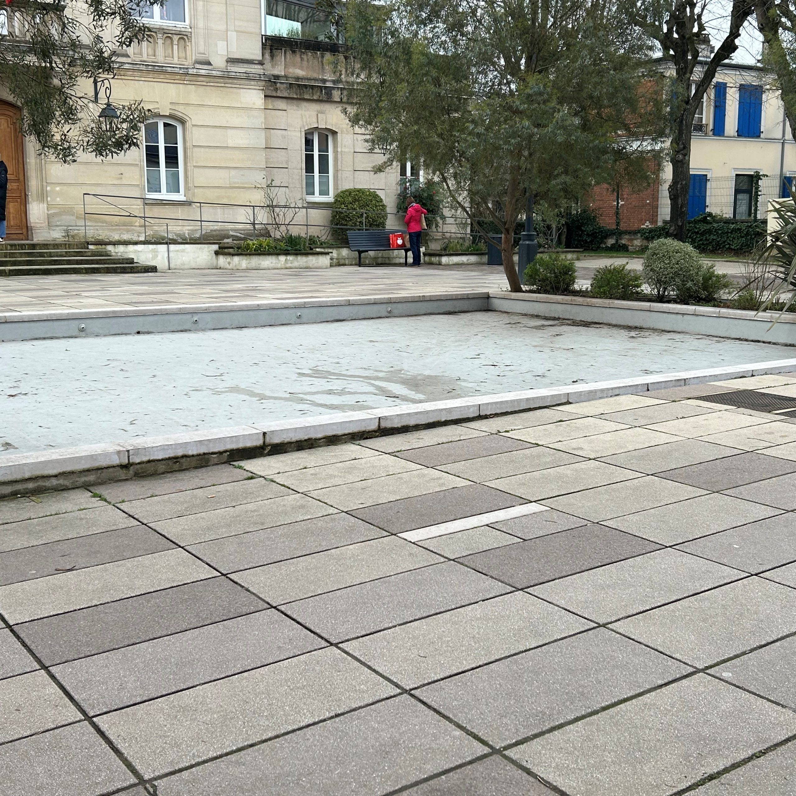 La place de la mairie : Une bassine, 90% du temps vide, 100% du temps sale.