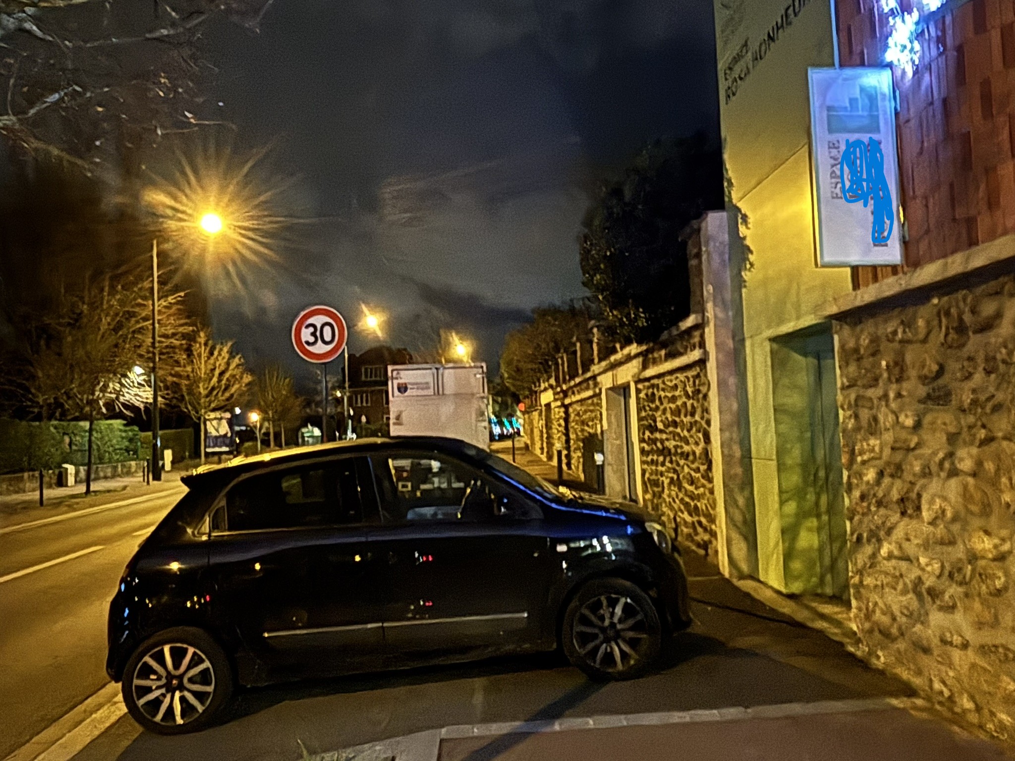 Il y avait une voiture garée sur le trottoir devant l’ascenseur qui permet aux personnes à mobilité réduite d’accéder à la salle. Avec ma canne, j’ai pu me faufiler. Avec le déambulateur, je ne sais pas si j’aurais réussi. En fauteuil roulant, je n’ose même pas imaginer !