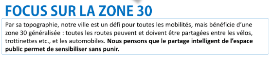 La zone 30 en place depuis 2005 ! Fontenay fut la première ville de France à généraliser la limitation de vitesse à 30 km/h. Encore un héritage de l’équipe précédente, que L. Vastel n’hésite pas à s’approprier sans vergogne.