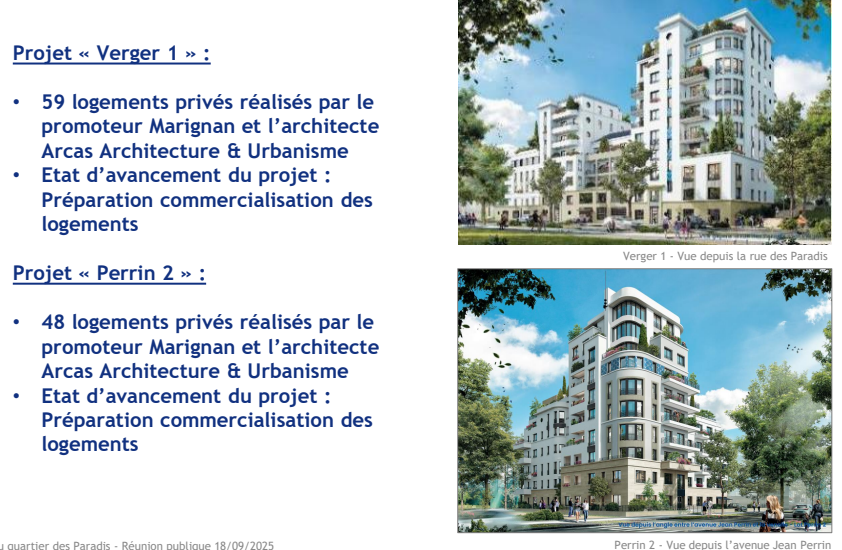 Deux immeubles sont également prévus Verger 1 et Perrin 2, respectivement de 59 et 48 logements privés.
